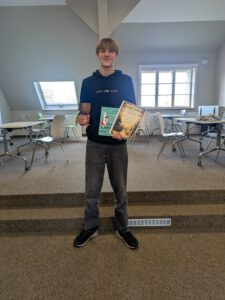 Nach fünf Runden gab es einen eindeutigen Sieger. Mit 4,5 von 5 möglichen Punkten hatte Hugo aus der 10a den Wanderpokal, einen wunderschön selbstgedrechselten Holzkelch von Herrn Berling, und ein Schachbuch über das Schwindeln im Schach, gesponsert von der Internationalen Buchhandlung, gewonnen. Auf Platz zwei hatte sich Thomas mit 3,5 von 5 Punkten gespielt. Thomas war der einzige Teilnehmer aus der Elternschaft, der netterweise die ungerade Zahl an SchülerInnen ausgeglichen hat, sodass alle Partien vollständig besetzt waren. Auf dem 3. Platz mit 3 von 5 Punkten lagen 4 Teilnehmer gleichauf, sodass in einer sechsten Runde (Blitzschach mit jeweils 5 min Bedenkzeit) die vier Gleichplatzierten die weiteren Plätze bzw. Preise unter sich ausspielen durften. Nach dieser Zusatzrunde hatte sich Noah aus der 11. mit einem Sieg den 3. Platz (4 von 6 Punkten) und zwei Eintrittskarten gesichert, gesponsert von FunJump Kleinmachnow.