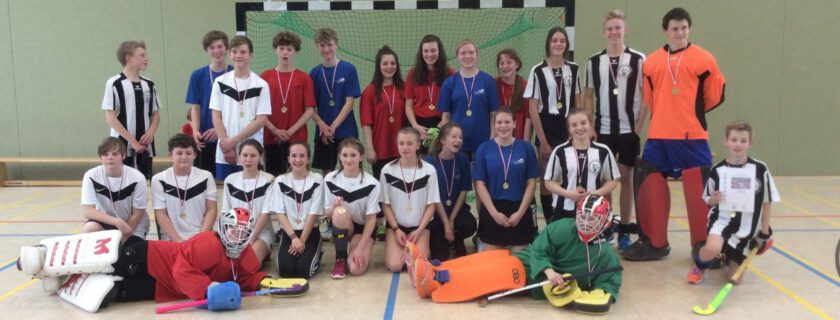 Ein eigenes Turnier musste her, damit die Mädchen Kl. 7-9 aus unserer Hockey- AG auch mal einen Spielpartner bekamen. Während Vereinsspieler/innen und AG – Jungen immer in Berlin fündig werden, sieht die Hockeylandschaft für ältere Hockeyanfängerinnen karg aus. Zwei Schulhockeyneulinge wagten, mit uns ein kleines Turnier in der Inselhalle Hermannswerder zu spielen: eine Mannschaft der 1. Oberschule Velten und eine vom Einstein – Gymnasium Potsdam.