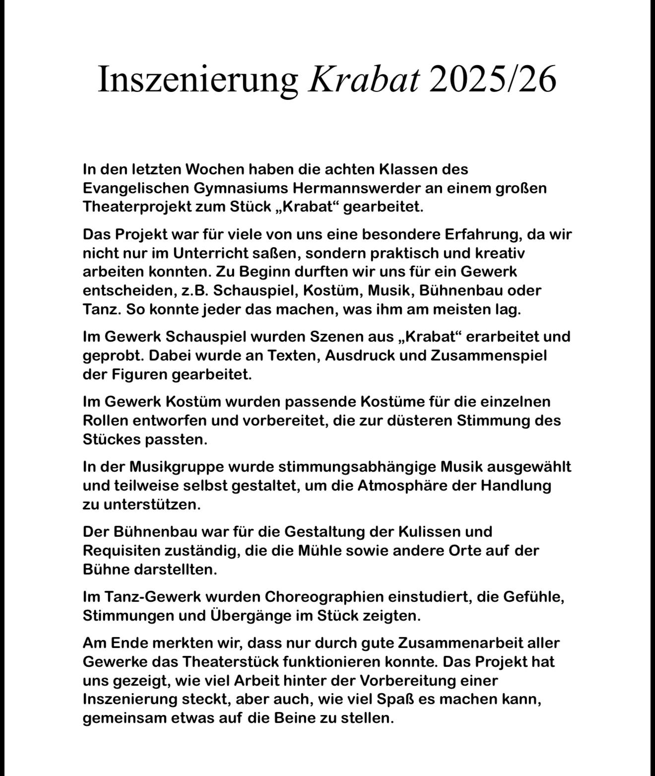 Am Samstag, den 24.01. um 18 Uhr und Sonntag, den 25.01.26 um 18 Uhr können Sie unser Schauspiel in der Aula hautnah erleben!