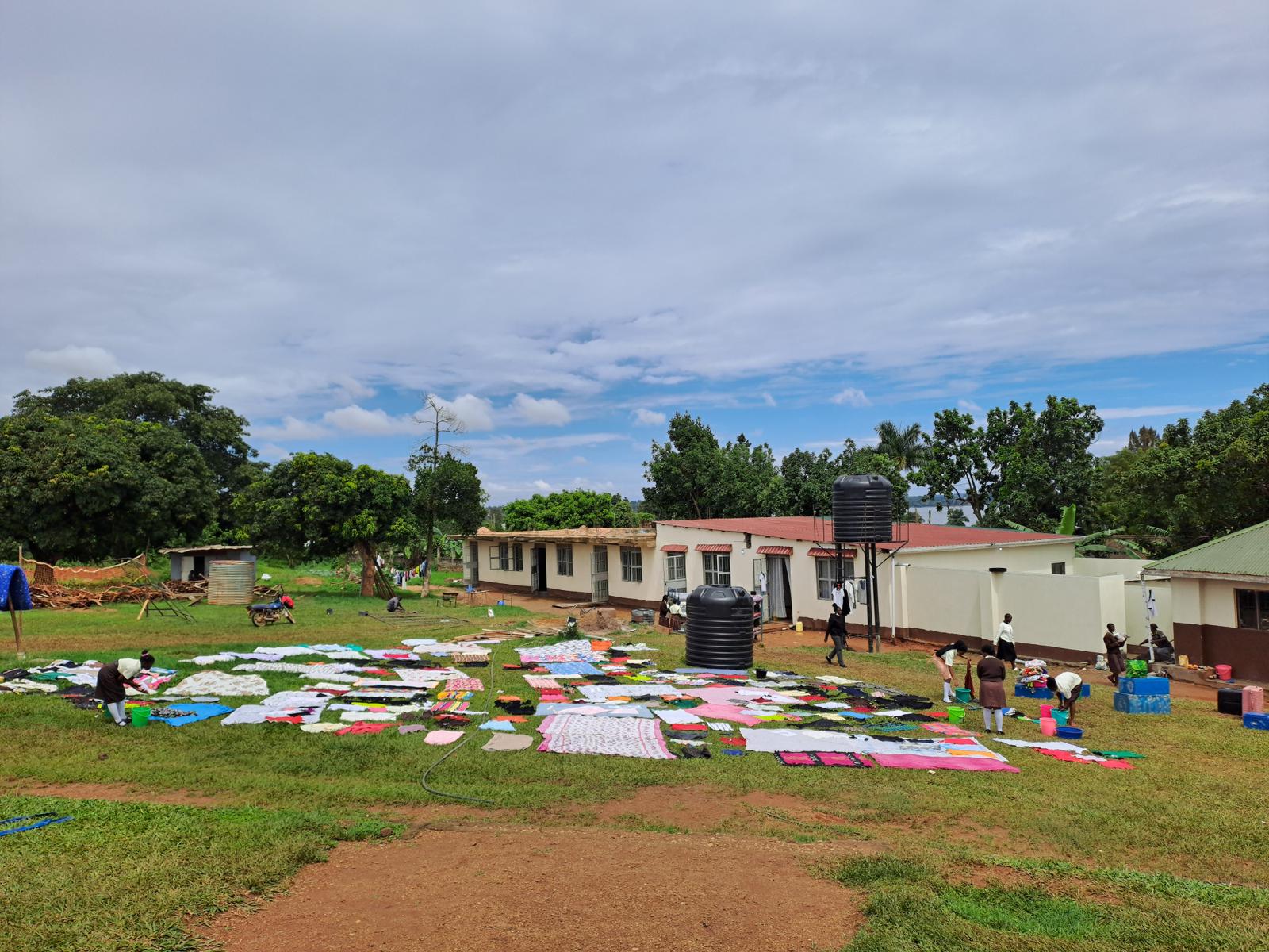 Letztes Jahr kamen im Rahmen der Sozialwanderung des Ev. Gymnasiums Hermannswerder 3100 € für die Victorian High School in Uganda zusammen. Im Februar 2026 war Anke Dreier-Horning an der Schule zu Besuch, um sich die Bauarbeiten anzuschauen. Mit dem Geld konnten für die Mädchen neue Duschen und WCs gebaut und ein neuer großer Wassertank, der die Duschen mit warmen Wasser versorgt (tagsüber wird das Wasser von der Sonne erwärmt), finanziert werden. Vor dem Bau der Duschen, gab es lediglich die Möglichkeit, Wasser in einem Eimer abzufüllen und sich in einer von 2 Kabinen zu waschen. Jetzt gibt es 15 Duschen für alle Mädchen des Internats, sowie neue Toiletten. Wie man auf dem Foto sehen kann, sind die Toiletten in Uganda klassische Plumsklos. Die Duschen und Toiletten sind von den beiden Schlafräumen, die rechts und links vom Sanitärtrakt sind, zu erreichen. Das bedeutet mehr Sicherheit für die Mädchen, denn in der Nacht muss jetzt niemand mehr alleine über den Schulhof laufen. Für mehr Hygiene sorgt nun auch ein extra angefertigter Ofen, in dem die Mädchen ihre Menstruationsartikel verbrennen können. In Uganda gibt es keine Müllabfuhr. Alles wird verbrannt. Daher wussten die Mädchen in der Vergangenheit oftmals nicht, wie sie ihre Hygieneartikel entsorgen können.